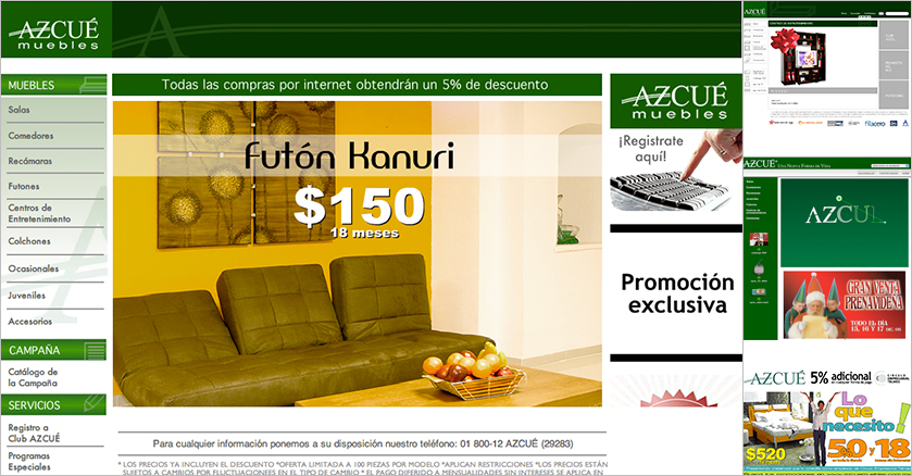 Descripción: Esta página funciona como una tienda en línea donde se pueden conocer y adquirir la gran variedad de muebles, así como las ofertas del mes de Azcué.