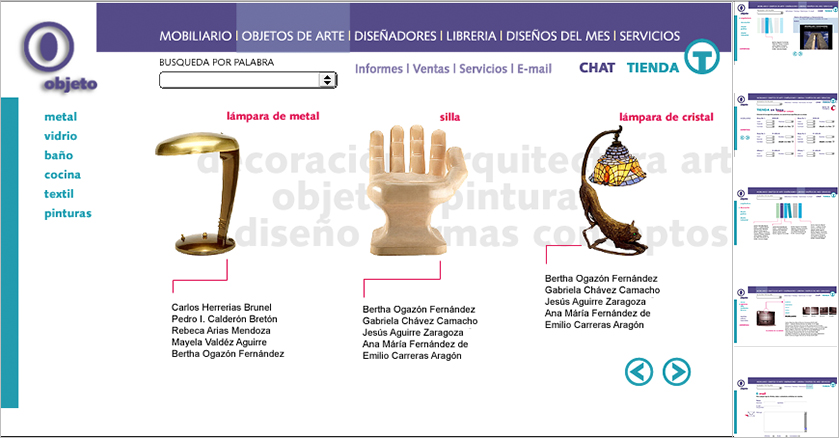 Descripción: Interfase gráfica enfocada a un sitio dedicado a la comercialización de mobiliario, productos, servicios, librería y tienda de compras.